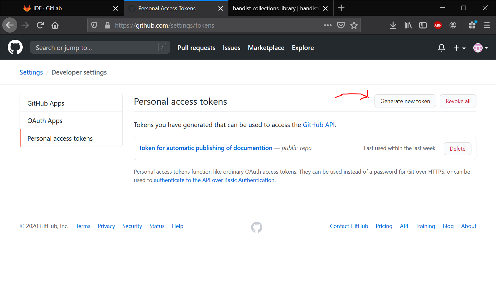 GITHUB_USERin the Handist Collections project) - one for the token you just created (which I called